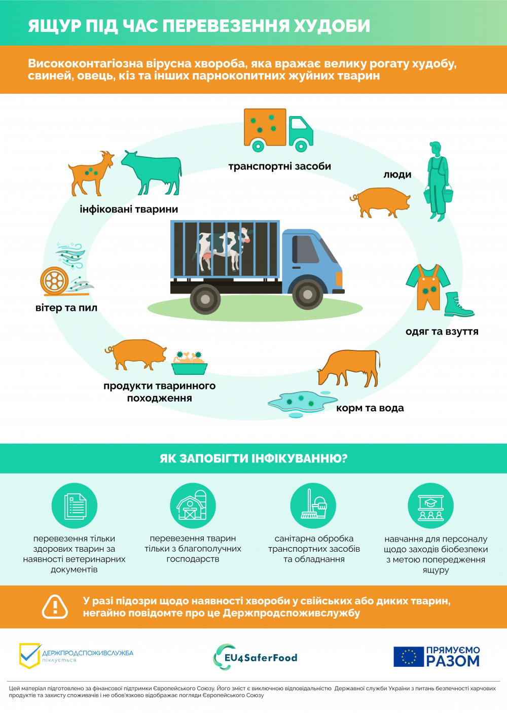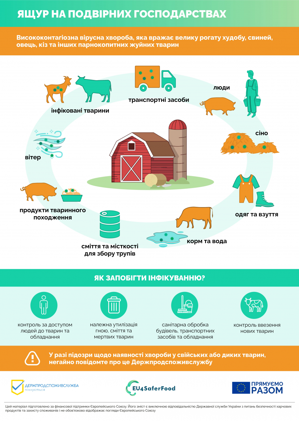 У разі підозри щодо наявності хвороби у свійських тварин необхідно негайно повідомити на «гарячу лінію» Головного управління Держпродспоживслужби в Запорізькій області (061) 239 73 29 чи державну установу ветеринарної медицини, яка обслуговує Ваш населений пункт.